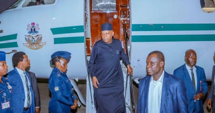 Shettima arrived at the Nnamdi Azikiwe International Airport on Saturday after representing President Bola Tinubu at the inauguration of Guinea’s President, Mamadi Doumbouya.